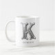 Maßgeschneiderte Tasse mit Weißkaffee mit dem Buchstaben K in einzigartiger dunkelgrauer Typografie. Fügen Sie Ihren Namen mit der Personalisierungsfunktion hinzu.
