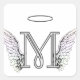 Letter M Initial Monogram mit Angel Wings & Halo Quadratischer Aufkleber