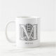 Maßgeschneiderte weiße Kaffeemaschine mit dem Buchstaben M in einer einzigartigen dunkelgrauen Typografie. Fügen Sie Ihren Namen mit der Personalisierungsfunktion hinzu.