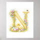 Letter N Gold Spring Nature Monogram Duckling Kids Poster