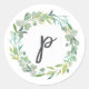 Nutzen Sie dieses gepflegte Design mit einem Kranz aus eukalyptusgrünen Blättern und einem monogramm Buchstaben P für verschiedene Anlässe - Beutel, Umschlag Aufkleber, etc.
