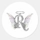 Letter R Initial Monogram mit Angel Wings & Halo Runder Aufkleber