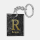 Letter R Monogramm auf schwarzem Marmor Schlüsselanhänger