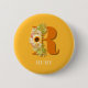 Ein elegantes monogramm Sonnenblume Blüte Blumen R Design, das einen anpassbaren Namen unter dem Buchstaben enthält. Perfekt für Lehrer und Betreuer und für junge Schüler als attraktive Identifikationsnummer. Und ein großartiges Ornament, das an Taschen und Hüten befestigt werden soll.