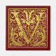 Charmanter dekorativer Brief V initiale Monogramm, Kalligraphie Stil Typografie, erster Buchstabe in Rot und Imitat Gold (Gelbtöne mit Highlights und Schatten zur Simulation metallischer Goldblattvergoldung Textur). Dieses Produkt kann mit jeder Farbe und Gold angepasst werden.