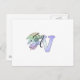 Letter V Initial Monogram Guardian Angel Alphabet Postkarte
