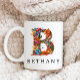 Une belle tasse à café personnalisée avec un papillon et une lettre florale "B" monogramme, avec des illustrations décoratives aquarelle fleurie et feuillage de jardin. Vous pouvez facilement customiser cette tasse avec votre nom ou créer un cadeau unique pour vos proches