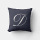 coussin monogramme personnalisé avec une lettre d'écriture classique D sur un arrière - plan bleu Navy. Fabriqué aux États-Unis à partir de coton ou de polyester lavables à la machine. Parfait pour Danielle, Destiny, Diana, Desiree, Dominique, Daisy, Dana, Deanna, Diamond, Deja, Denise ou toute autre personne qui s'appelle a un D initial.