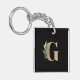 Elégant porte - clé noir avec un monogramme botanique d'or avec majuscule G lettre au centre.