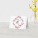 Une jolie couronne de fleurs rose et lavande entoure la lettre K sur cette carte personnalisée. Une surprise à l'intérieur, un dessus rose pâle assorti à une image de bouquet fleuri. Votre nom ou tout autre texte personnalisé se trouve au bas de la moitié inférieure. Personnalisé pour vous, joli, et utile pour de nombreuses occasions.