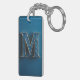Lettre initiale bleue M avec contour en couleur dorée sur monogramme arrière - plan bleu.Cette conception est générée par Ai.