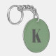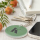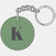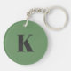 Simple, stylish custom initial letter monogram keychain in moderne minimalist typographiy in dark gray on green. A perfect custom gift or accessoire with personal touch !
