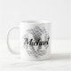 Tasses à café personnalisées avec initiale et nom en noir, blanc sur le vortex mi-teint gris. Couleurs neutres élégantes. Modifiez le texte pour personnaliser la lettre et le nom initiaux.