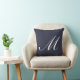 coussin monogramme personnalisé avec une lettre d'écriture M classique sur un arrière - plan bleu Navy. Fabriqué aux États-Unis à partir de coton ou de polyester lavables à la machine. Parfait pour Mackenzie, Madeline, Madison, Maria, Mariah, Marissa, Mary, Megan, Michelle, Miranda, Monica, Morgan ou toute autre personne qui s'appelle commence par la lettre M.