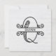 Lettre monogramme noir "Q" avec le nom de famille sur un arrière - plan texturé en bois blanc. Le nom est modifiable. Arrière - plan peut être modifié.