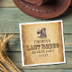 Rufen Sie alle Cowboys auf, um das letzte Rodeo ihrer Südfreundin zu feiern. Ein braunes Paar Cowboystiefel und Hut sitzen auf einem Grunge verblassten Pergament-Stil Party Papierserviette für eine gute Zeit mit Ihrem Land Western Freunde. Eine coole Wildwest-Bachelor-Party.