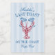 Toast die Braut am Strand mit diesen niedlichen Junggeselinnen-Abschied Weinetiketten an der Küste. "Last Toast on the Coast" erscheint in sommerlich blauer Schrift, mit einer Abbildung eines roten Hummers, der zwei Champagner-Coupe-Gläser klebt. Personalisieren Sie Ihre persönlichen Daten mit dem Namen und dem Ziel der Braut.