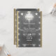 Schwarzes Dekor und goldener Rahmen mit Lichtern und Kronleuchter, elegante Einladung zur Hochzeit