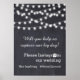 Lichterfolge auf der Tafel sommerliches Hochzeitsposter mit Instagram-Hashtag-Poster mit weißer, blinkender Leuchtfolge auf der Oberseite und dem Zeichen von Instagram auf Tafel oder Tafel und dem neuesten Trend, einem Hashtag für Instagram für diejenigen, die ihre Hochzeit gewollt, auf sozialen Medien mit den Phrasen "Werden Sie uns helfen, unseren großen Tag zu erfassen?" und "Bitte Instagram unsere Hochzeit" mit einem Instagram Symbol anstelle des Buchstaben a. . Dieses moderne und trendige Hochzeitsdesign mit Vintagen Elementen ist Teil eines Hochzeitsgeschehens oder einer Hochzeitskollektion. Es ist vollständig anpassbar und eignet sich ideal für eine rustikale Hochzeitsfeier im Freien.
