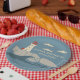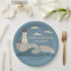 Fügen Sie mit diesen personalisierten Tellern eine nautische Touch zu Geburtstagsfeiern und anderen besonderen Veranstaltungen hinzu. Sie haben eine einfache Darstellung des nautischen Stils eines Leuchtturms in Rot und Creme oder Elfenbein. Der Leuchtturm liegt an einem felsigen Ufer mit unter ihm abstürzenden Wellen und cremefarbenen Wolken am Himmel. Die Grafik ist Set vor einem weichen, französischen blauen Hintergrund.