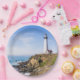 Leuchtturm auf dem hellblauen Himmel, weißer Ozean Pappteller