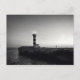 Dieses Schwarz-Weiß-Foto zeichnet sich durch die Leuchtturmlandschaft bei Sonnenuntergang aus, Mallorca, Spanien.