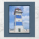 Nautisches Design mit Aquarell-Leuchtturm-Dekoration in dunkelblauem Rahmen. Es ist möglich, die Hintergrundfarbe zu ändern und das Design mit Ihrer Wahl zu ergänzen.