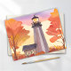 Leuchtturm im Herbst | Fallfolien-Wasserfarbenpostkarte