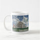 Die Tasse des Kaffees ist mit einem Gemälde aus dem Leuchtturm von Cedar Point in Scituate, Massachusetts bedruckt. Artwork: Aquarell auf Tafel. Copyright Dominic A. White. Alle Rechte vorbehalten.