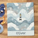 Diese bezaubernde nautische personalisierte Decke besticht durch einen gemütlichen Leuchtturm mit eisigen Wellen und Schneeflocken.
