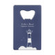 Eleganter und einfacher marineblauer Flaschenöffner mit Illustration eines Leuchtturms! Es könnte ein ausgezeichnetes Geschenk für einen Seemann oder Liebhaber von Ozeanen und Meeresküsten!