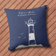 Elegantes und einfaches marineblaues Kissen mit einer Illustration eines Leuchtturms! Es könnte eine ausgezeichnete Geschenkidee für einen Segler, eine Familie oder einen Liebhaber von Ozeanen und Meeresküsten!