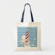 Hellblau und weiß gestreifte Totttasche mit einem nautischen Ozean Thema mit einem rot-weiß gestreiften Leuchtturm und einem Oktopus, der einen Seemann trägt!