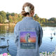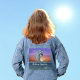 Lever de soleil, tortues de mer nageant et dauphin Denim Jacket. Le texte peut être personnalisé.