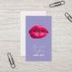 Ces cartes de visite design et tendance présentent des lèvres 3D contre un fond cool violet pastel. Le dos de la carte comprend un ensemble contemporain de polices au charbon de bois, contre un arrière - plan léger en ivoire. Le design est saisissant et mémorable et fera une impression durable. Cette carte est pour le minimaliste moderne dans l'industrie créative. Les variantes sont disponibles dans d'autres combinaisons de couleurs.