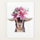 Il présente ma peinture numérique d'une chèvre portant des lys sur sa tête.