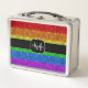 Personalisieren Sie einzigartige Imitate funkelnd Metal Lunch Box mit Ihrem Initial und Namen. Funkelnd LGBT-Fahne in lebhaften Glitzern in Rot, Orange, Gelb, Grün, Blau und lila, lebendigem Glitzer. *Foto von Glitzern nicht wirklich Glitzer!