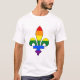 Grundlegender T - Shirt mit Fleur-de-lis-Symbol (Lilienfleur oder Lilie-Blume) mit Regenbogenstreifen aus LGBT (lesbisch, schwul, bisexuell und transsexuell)-Fahne, Gay Pride-Design