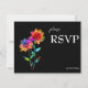 This RSVP card from the Petals & Pride collection is designed to celebrate love with clarity, color, and care. Set against a rich black background, it features radiant rainbow florals in translucent hues of pink, orange, yellow, green, and blue—symbolizing unity and joy. Guests can confirm or decline attendance, share any special dietary requirements, and even request a favorite song to help shape the soundtrack of your celebration. It’s a vibrant, inclusive way to gather meaningful responses while keeping the experience personal and festive. Matching items available to complete your suite with pride and style.