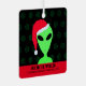 Ideal für die UFO-Geeks auf Ihrer Liste, diese lustige LGM in einer Weihnachtsmannmütze Weihnachtsschmuck in Schwarz und Rot ist einfach zu anpassen für ein von einer Art personalisierten Geschenk. Diese coole grüne Alien in einer rot-weißen Weihnachtsmannmütze ist vorne und Mitte auf dem schwarzen Hintergrund mit einem Muster dunkelgrüner Schneeflocken. Ein fett roter Rand am Ende dieses lustigen Ornaments zeigt zwei Textzeilen in schwarzen Schriftart, die jeweils individuell angepasst werden können. Fügen Sie Ihren Namen und das Jahr in den kleineren einfacheren Schriftart, wenn Sie wollen, und verließ den größeren Text JOY TO THE WORLDS wie ist oder ändern Sie es zu Ihrer eigenen Weihnachtsbotschaft. Auf beiden Seiten bedruckt, wird dieses quadratische Alien Santa Ornament aus Aluminiummetall sicher ein wenig albernen Geek Spaß in Ihren Weihnachtsbaum bringen.