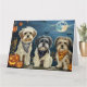 Entfesseln Sie den unheimlichen Geist mit diesem unheimlichen Halloween-Design, das eine Hundepackung unter einem dunklen, mondbeleuchteten Himmel bietet, umgeben von fliegenden Fledermäusen und glühenden Kürbissen. Ideal für diejenigen, die mit ihren wütenden Freunden eine Touch voller Furcht Liebe haben!