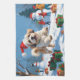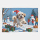 Ein flauschiger Lhasa Apso läuft mit einem festlich roten Weihnachtshut glücklich durch die verschneite Landschaft. Diese fröhliche Winterlandschaft zeigt den lang fließenden Mantel der Rasse, die treue Natur und den verspielten Charme und erweckt gleichzeitig die Wärme und den Zauber der Urlaubssaison. Ein reizvolles Design voller Feststimmung.