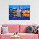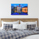 Impression en toile de la ligne d'horizon de la ville de La Haye, le centre gouvernemental de la Pays-Bas, au début de la soirée à l'Heure Bleue avec les gratte-ciel d'architecture moderne derrière le musée historique de Mauritshuis, le bâtiment du parlement de Binnenhof et le lac Hofvijver. Superbe décoration sur votre mur !
