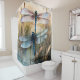 Zwei blaue Libellen schweben über Wasser und Schilf auf diesem schönen Duschvorhang. Ideal für alle, die die Natur und die Natur im Freien Lieben.