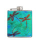 Herrliche rote, orange, blaue und Bronzelibellen auf einem gemischten grünen und blauen Hintergrund des Türkises. Von meiner ursprünglichen Libellengrafik. LyndseyArt