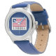 Kinderuhr aus Edelstahl mit blauem Lederarmband