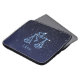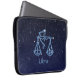 Laptop-Ärmel mit dem Symbol für Libra in weichem silberblauem Blau, überlagert mit den Sternen der Sterne, vor einem Sternenhimmel-Hintergrund, gestuft von tief Mitternacht blau bis schwarz