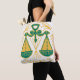 Libra - Sternzeichen des Zodiaks auf einer Tasche. Grün, Gelb und Weiß.