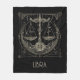 Maßgeschneiderte Fleecedecke mit Libra zodiac Zeichenkonstellation mit "Libra" in mystischer Typografie mit schwarzem Hintergrund.