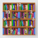 The bright bookshelf pattern on this beautiful wall clock is perfect for bibliophiles / proud bookworms. The graphic pattern repeats, with about 25 books total. Some lean, some stand up straight, and they're all brightly colored and sitting on a shelf frame with a wood grain look. It's the perfect way to display your love for reading and libraries and would look nice on your reading room wall. It also makes a great gift for an avid reader, book collector, English teacher, writer or librarian. Clock numbers are white with a black outline. See matching items in our store!